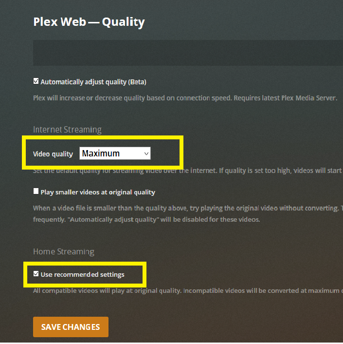 Plex Reccomended Settings